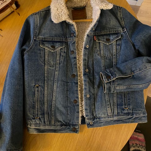Nydelig kordjakke med teddyfor fra Levis str S. Jakken er utsolgt på nett og butikk. Koster kr 1.600 i butikk.