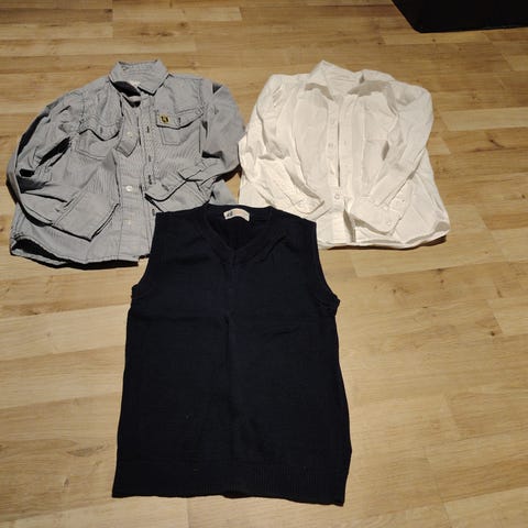 Pent brukte skjorter og vest. Klærne er uten hull eller flekker. De ser krøllete ut på bildet, men etter en vask og evt litt stryking vil de være plettfrie 👍🏼