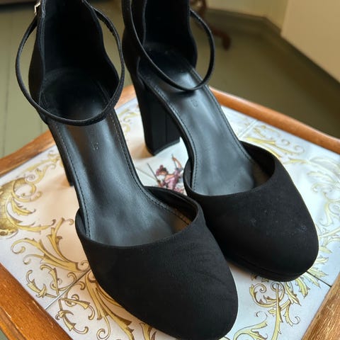 Helt nye ankelhøye med åpen tå , pynt i overkant, glidelås bak og høy hæl. Veldig spesielle sko du ikke finner mange av.