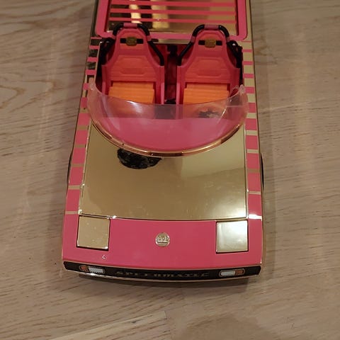 Bil til Barbie fra 80-tallet selges. Kommer med original emballasje. Festene er ødelagt både til taket og løs "pute" bak baksetet. Og frontvinduet er limt fast. Selges som den er. 295,-