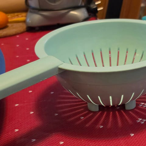 Stor gammel koneformet sil i aluminium. Diameter ca 21cm og høyde 24cm. Noe slitasje. Det står "patented 1947" og "Lamb wedge-lock" på håndtaket. Kan hentes i Stokke i Vestfold eller sendes mot porto. Billigste porto blir 69kr med Postnord utenom fiksferdig.