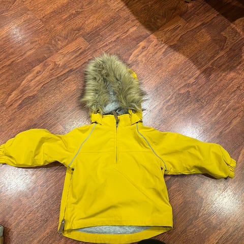 Hette med pels. Fin blåfarge. Str 104 - 4 år. Romslig i str.