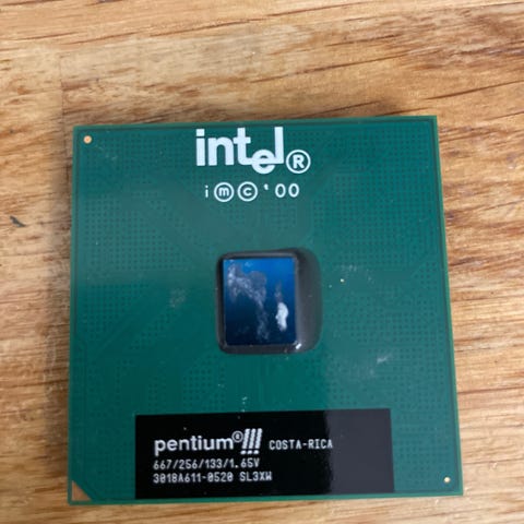 Selger en eldre Intel Pentium prosessor. Dette er en klassisk CPU fra 90-tallet – perfekt for samlere, retro PC-prosjekter eller som dekor.