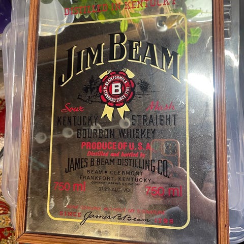 Stort skilt / bilde i glass, Henry Choice-reklame. Måler 74 cm x 104 cm.