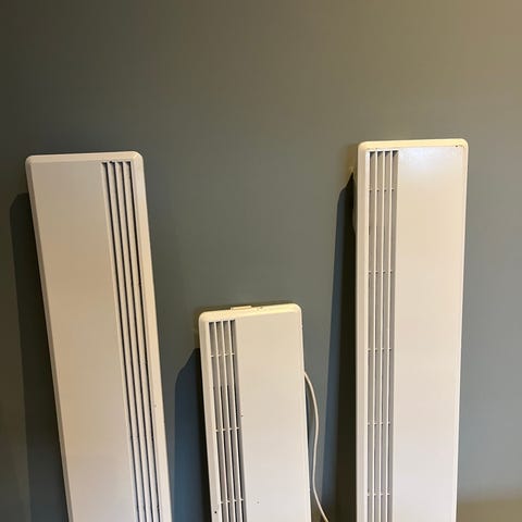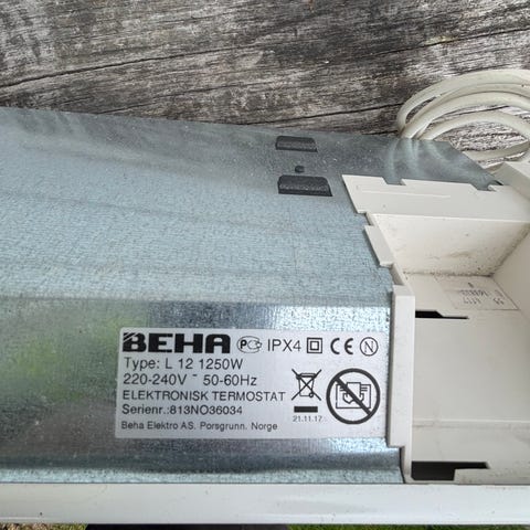 Vi selger våre to flotte miljø ovner. Vi har to stykk på 50cm høy, 128 cm lang. Vi har vært veldig fornøyd med disse og de gir god varme. 1250watts ovner. Medfølger to stykk termostat R80 RDC 700. Selges for 3000,- per stykk.