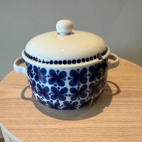1 terrin med lokk (et lite skår på kanten av lokket)