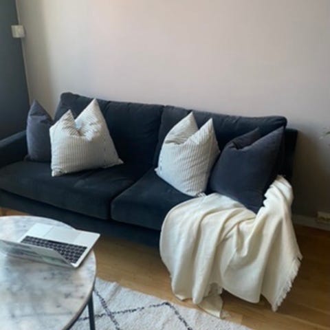 Pent brukt sofapall/puff fra Hjellegjerde til salgs. Lekker off-white farge med få bruksspor. Fin og myk å sitte på. Mørk brune eikeben. Selges da jeg har begrenset plass i stuen dessverre.