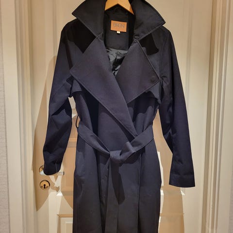 Svart frakk som er perfekt til sesongbytte til vår eller høst.