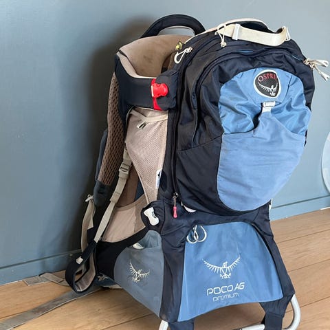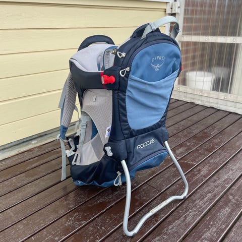 Fint brukt bæremeis medfølgende regntrekk. God å bære, enkel å justere.
