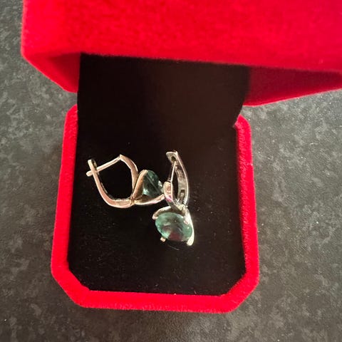 Langt halskjede og ørepynt fra Sence Copenhagen. Sølv med steiner i tre ulike grånyanser.