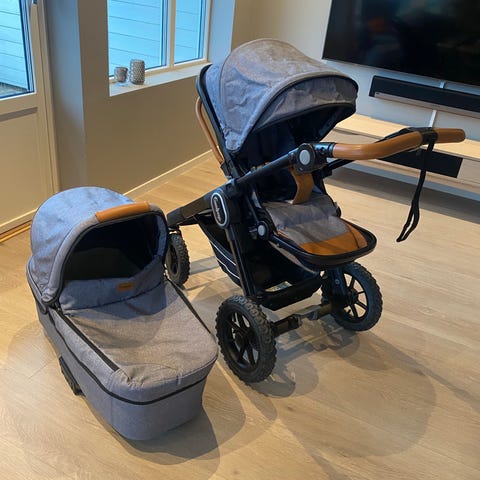 Lite brukt håndlaget svensk kvalitet selges, kjøpt ny i 2019,brukt til et barn .har kvittering. Ga ca 14000 .hos barnas hus. Komplett med sitte og ligge/sove del. To regn trekk som nye følger med. ubrukt adapter for BeSafe barnesete følger med.(hvis jeg finner den) izi go barnesete kan følge med om ønskelig.