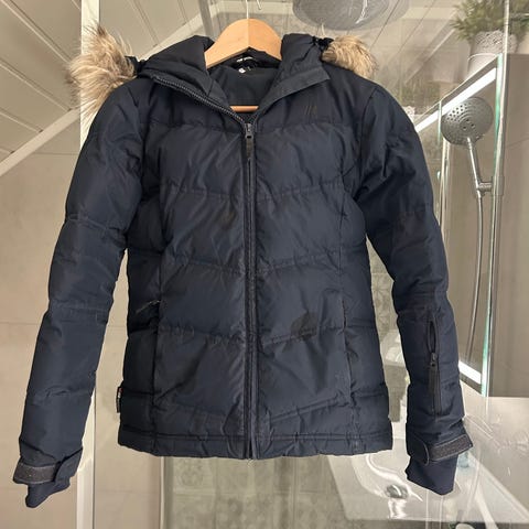 Blå, varm jakke med hette fra Retour i str 12 år. (Noen av bildene er litt misvisende fargemessig, da jakken ikke er så knall som feks på bilde nr 2). Jakken er brukt, men uten flekker eller rifter. Glidelås i front og på kommene. Dog mangler den ene trykknappen i front, uten at det har hatt noe å si for bruken. Nypris 899,- Selges kr 125,-