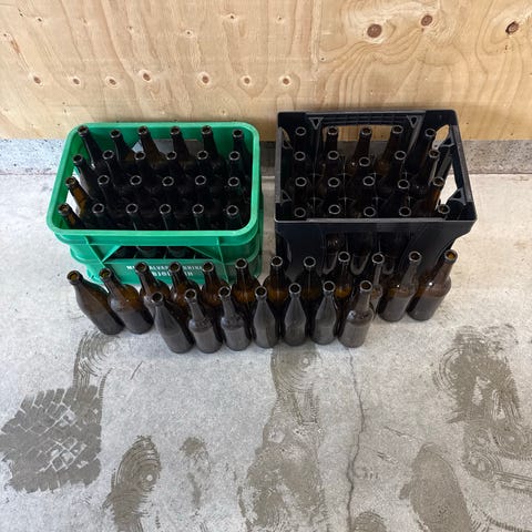 Har 150-200 stk flasker. Alle er skyldt og trenger kun en kjapp vask.