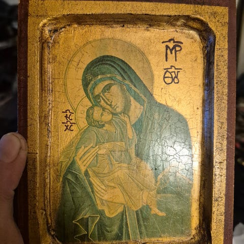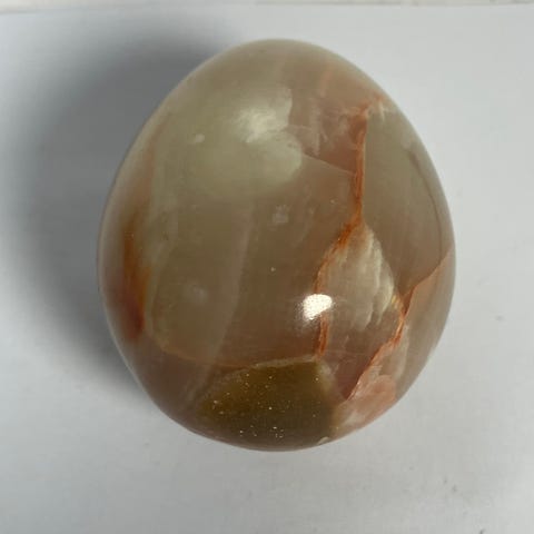 Flott egg i tre med ikonmotiv. Høyde 9 cm.