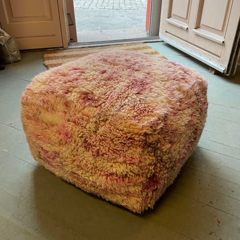 Puff sydd i indiske bomullstoffer.Forskjellige nyanser av oransje,samt mye gulltråd på denne.Selges uten innmat.Lang glidelås i bunnen gjør det enkelt å fylle puffen.Om man vil bruke puffen til oppbevaring,er det plass til en dyne og 2 puter i denne str.Veldig praktisk!