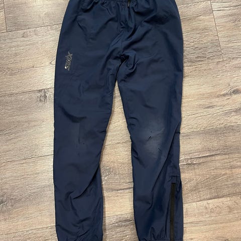 Buksen er litt slitt i rompen og på knærne. Typisk slitasje fra lek. Mye bukse igjen.