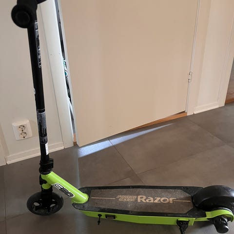 Flott scooter. Kjøpt i sommer for 1699 kr. Mer egnet for barn 6-7 år. For barn 8 år vil han allerede være liten og svak.