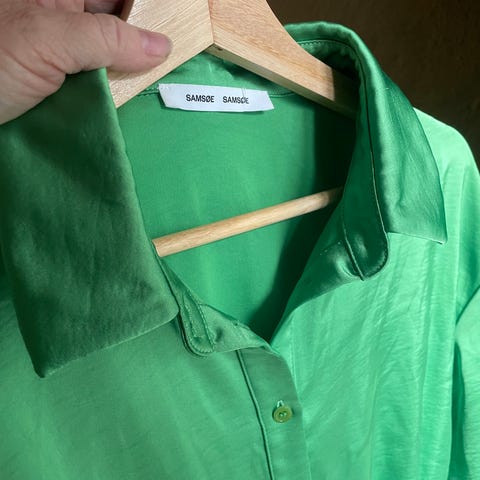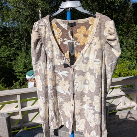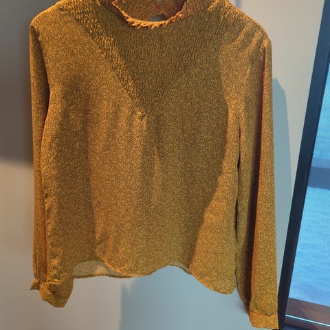 Kjole fra Samsø Samsø. Litt gulaktig med blå blomster. Størrelse M/L