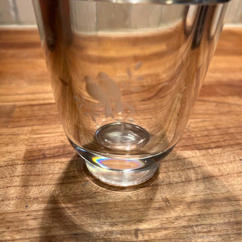 Vintage lite glass med sølvlokk, 7 cm høyt, 5,7 cm i diameter øverst og 4,7 cm i diameter nederst.