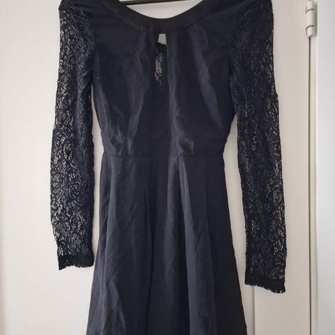 Selger en kjempefin svart kjole med gullpaljettdetalje over skulder. Kan fungere både som off-shoulder og over skuldre. Kjolen former fint på kroppen grunnet symåten på sidene. Kjøper betaler frakt.