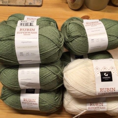 Selger 2 hesper SuperWash Merino fra Lykkegarn i fargene natur og Kiwi.