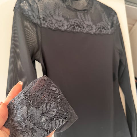 👗 Hele skjorte er laget i vakker, gjennomsiktig blonde – gir en lett og romantisk følelse.