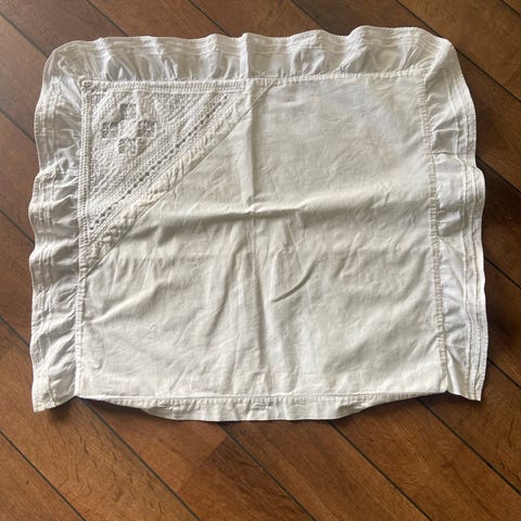 Flotte putetrekk sydd av gammelt antikk åkle.