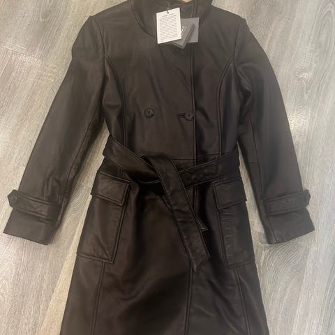 En superflott trenchoats fra ZARA i en nydelig brunfarge. Jakken har stikklommer og belte i livet, den er foret og har mange flotte detaljer. Jakken er pent brukt, ingen bruksmerker.