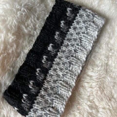 Genser str. M. Sokker 37/39. Strikket med Eco highland wool fra Viking garn.