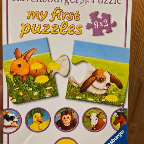 Selger et søtt puslespill med 20 brikker. Alle brikkene er hele. Eska er derimot noe skadet. Se bilde