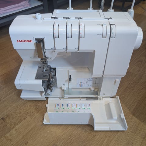 Meget pent brukt janome Air thread, kan sendes i orginalembalasje. Bruksanvisning, orginalutsyr-boks, ekstra synåler, noen assorterte farger m spoler med toldilock følger med.