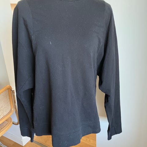 Myk, sort topp, str 44/46. 3/4 lange ermer. Kr 90. Hentes eller sendes for kjøpers regning.