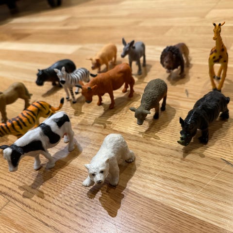Flott sett med 12 små ville dyr. I dette settet får du bl.a. løve, tiger,, sebra, geopard, kamel, bjørn osv. Dyrene er små i størrelsen, ca 4 cm.