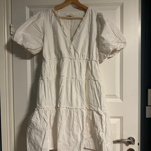 Hvit kjole fra Hampton Republic i str XS. Kjøpt på Tise for et par år siden, kun brukt 2 ganger av meg. Har noen gule merker øverst (se bilde 2), har ikke prøvd å få disse vekk så mulig det går med vanish feks. Synes ikke veldig godt