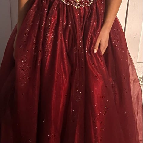 Kjolen ble kjøpt for tre år siden og er kun brukt en gang på 10. klasse skoleball. Ny pris 2900,- Kjolen fremstår som ny. Str. L. Kjolen kan knytes på flere ulike måter. Farge: mørk blå