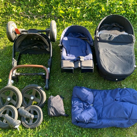 Velholdt barnevogn fra Stokke inkludert dypvogn/bagdel og sittedel.