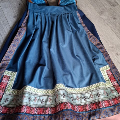 Pent brukt og nyrenset helgedrakt fra Grinakervev. Stakk, cape, forkle, veske og pannebånd. Vanlig bunadskjorte kan medfølge. Str 10 , men kan legges «opp og ned», så passer fra 8 til 14.🇳🇴🇳🇴nypris er ca 15000 uten cape og veske
