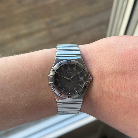 Selger min Omega Constellation Automatic Chronometer. Ref. cal. 564, nr. 168.018. Produsert 1969. Flott klokke med lang gangreserve. Urskiven er 34 mm uten krone. Original Omega-krone. Litt patina mellom 9 og 10 og 3 og 4, men urmaker sier det det helligbrøde å gjøre noe som helst med urskiven. Omega-boks (ikke den originale) følger med. Service tidlig i 2023 som jeg ikke har kvittering på. Selges kun fordi jeg er ute etter en Omega Pie Pan.