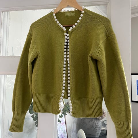 Sprek jakke med vakkert perlemotiv i ryggen og på lomma foran.
