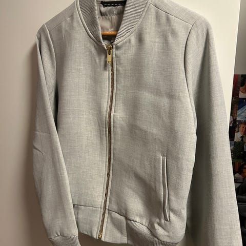 Kul bomberjakke i ullblanding. Kjøpt i London. Noen små flekker på den, men ellers i god stand.