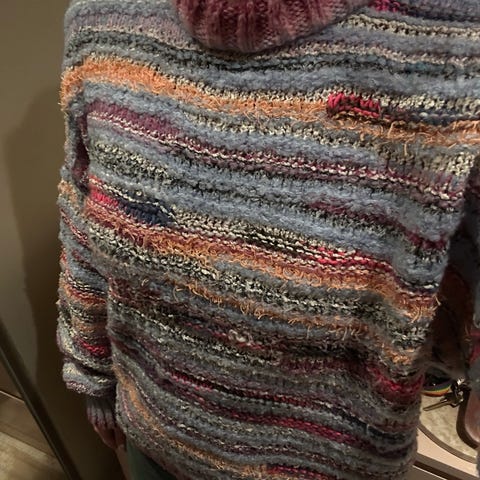 Summer nights strikket genser. En multifarget strikket genser med rund hals, striper og løs i passformen.