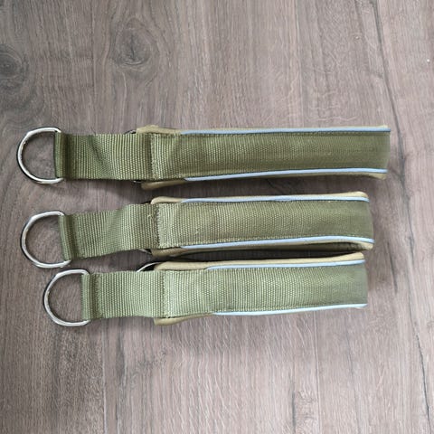 100,- pr stk! Diverse Halsbånd str 50/55-til 62/65. Se bilde for str. Nye ubrukte. Gode merke med kvalitet. Se bildene for nøyaktig str. Kan sende.