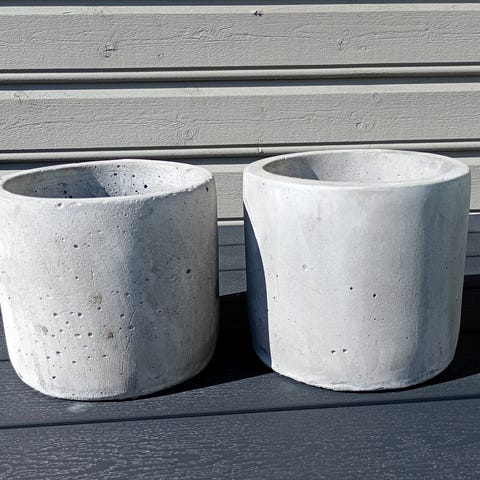 Selger två lyseholder i grå ”stein” med vit dekor.