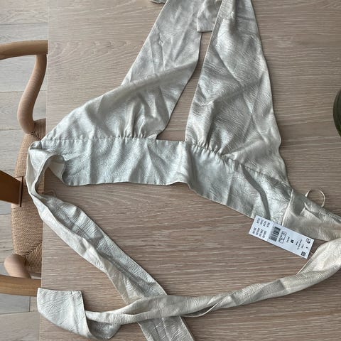 Super fin sølv strikket topp med hjerte utringing. Kun prøvd på. I Str.Medium. Kan hentes eller sendes som liten pakke