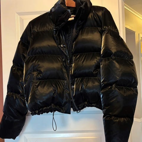 Selger en brukt dunjakke fra Fleischer Couture da den kun har blitt hengene i skapet. Den har en del bruksmerker, og et par små hull.