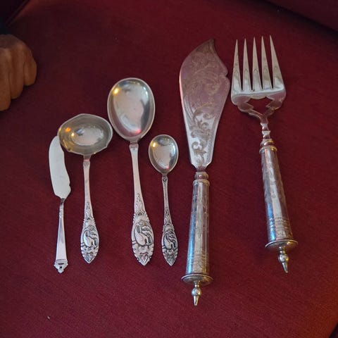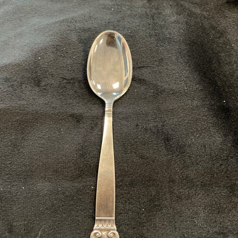 6+6 sølvplett teskje. En eske står gullsmed Eivind Vogt,bodø på.