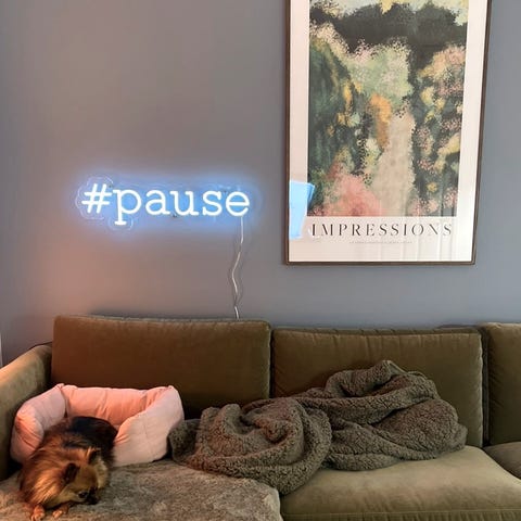 «Hjemmekino» neonskilt. Kan dimmes og endre farger med fjernkontroll.