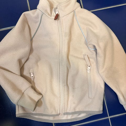 Pent brukt vindfleece størrelse 98. Fra Kaxs (KappAhl). Selges fordi den er for liten. Liten flekk på det ene ermet, se bilde. Den er ikke forsøkt fjernet.