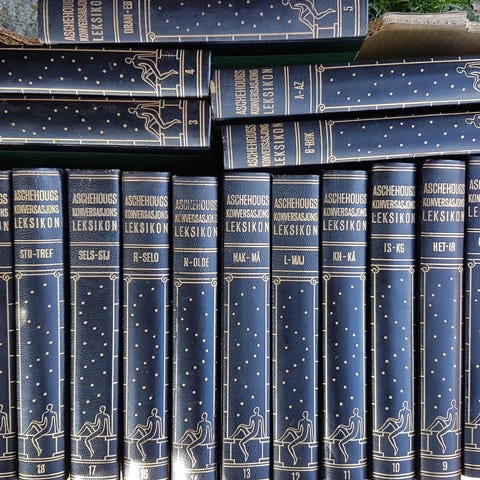 Aschehougs konversasjonsleksikon - 20 bind - svært lite brukt - kr. 900,-