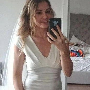 Nydelig Ricco vero kjole, en god str 34 selges. Den er i fargen lys sjøblå med en anelse turkis.Det er en tynn underkjole i silke under selve kjolen. Se eget bilde. Får ikke frem fargen skikkelig på bildene. Brukt noen få ganger.